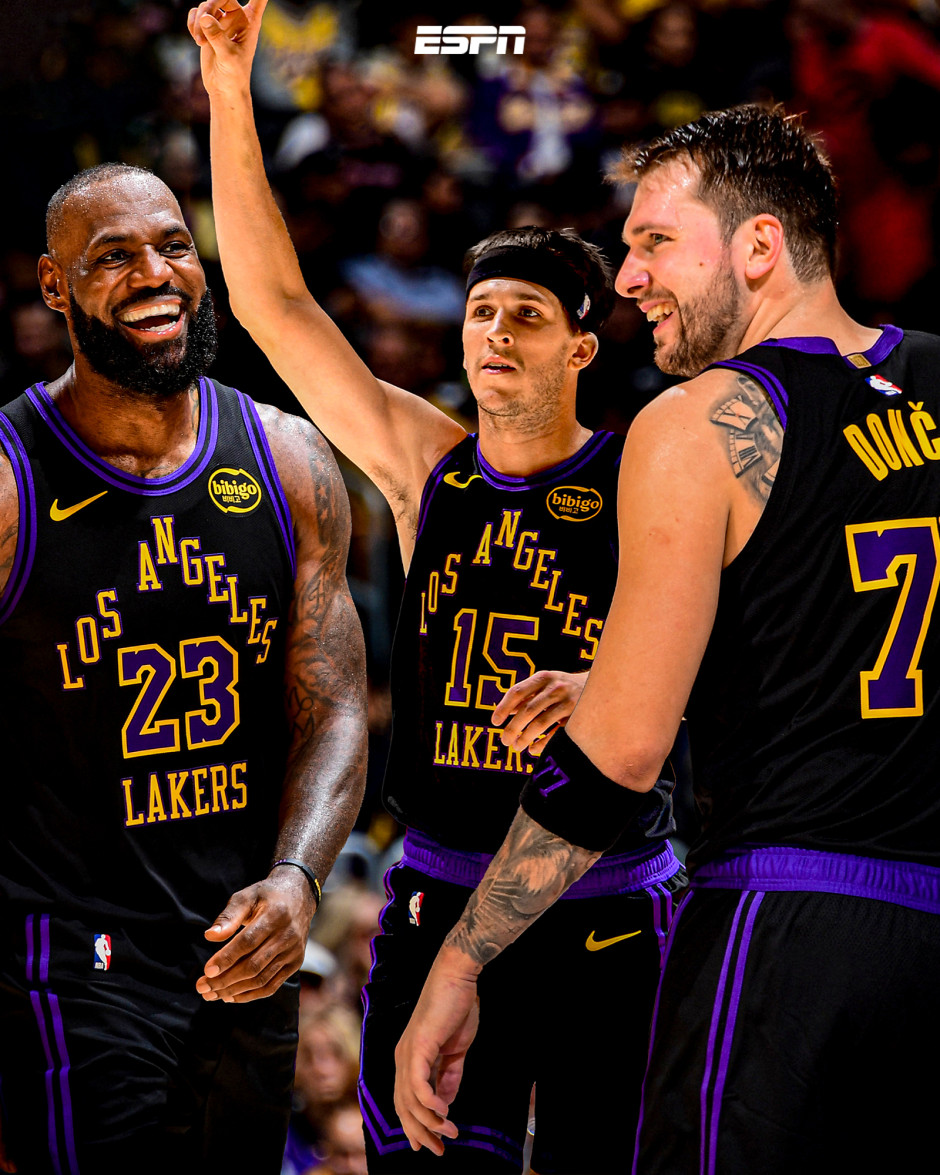 但球队的进攻端同样令人忧心。湖人队组建三巨头的初衷,是希望凭借东契奇、詹姆斯和里夫斯的组合,打造一套极具统治力的进攻体系,以此弥补防守端的短板。三巨头同时在场时,球队的进攻效率值仅为118.3——这一数据虽然算得上不错,但远称不上具备统治力,与本赛季进攻效率排名联盟第九的圣安东尼奥马刺队持平。