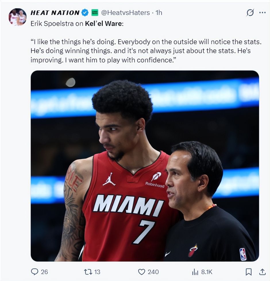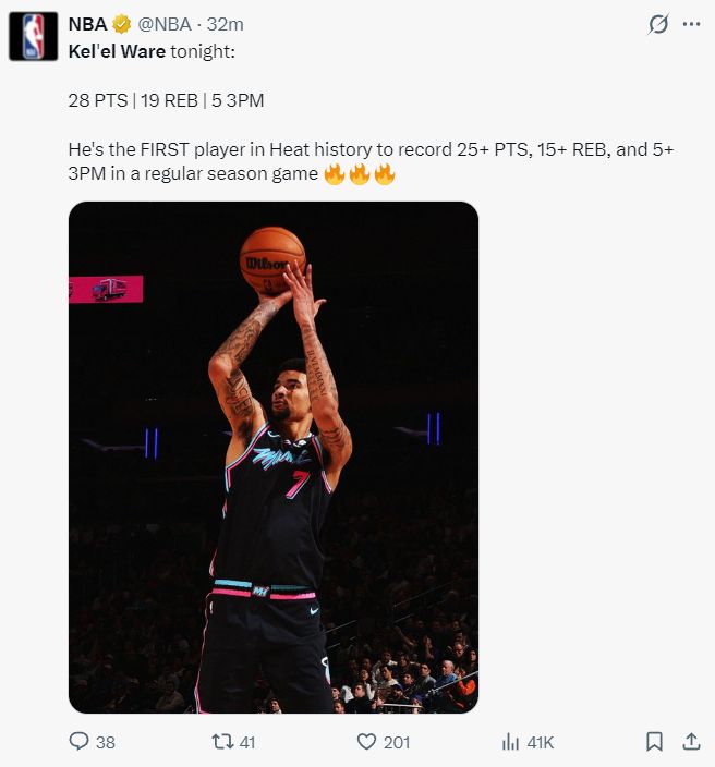 28+19创4纪录比肩字母!韦尔近三战场均25+15 美媒:热火最佳