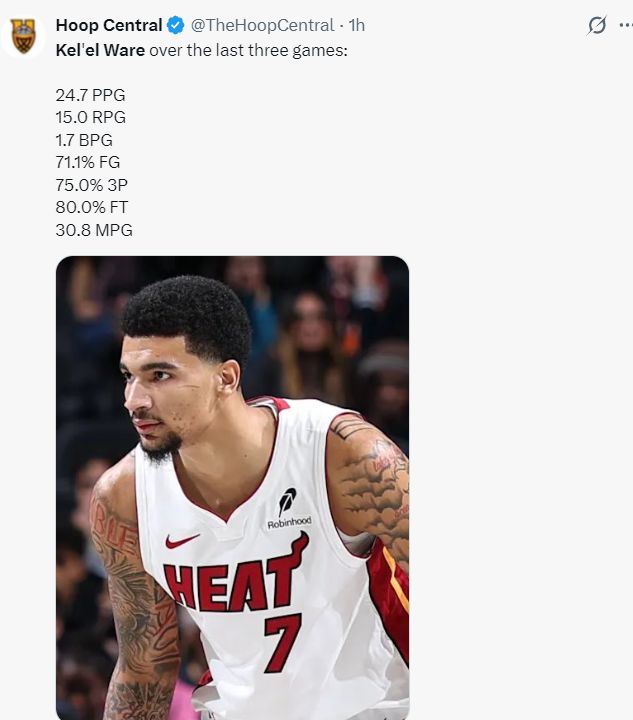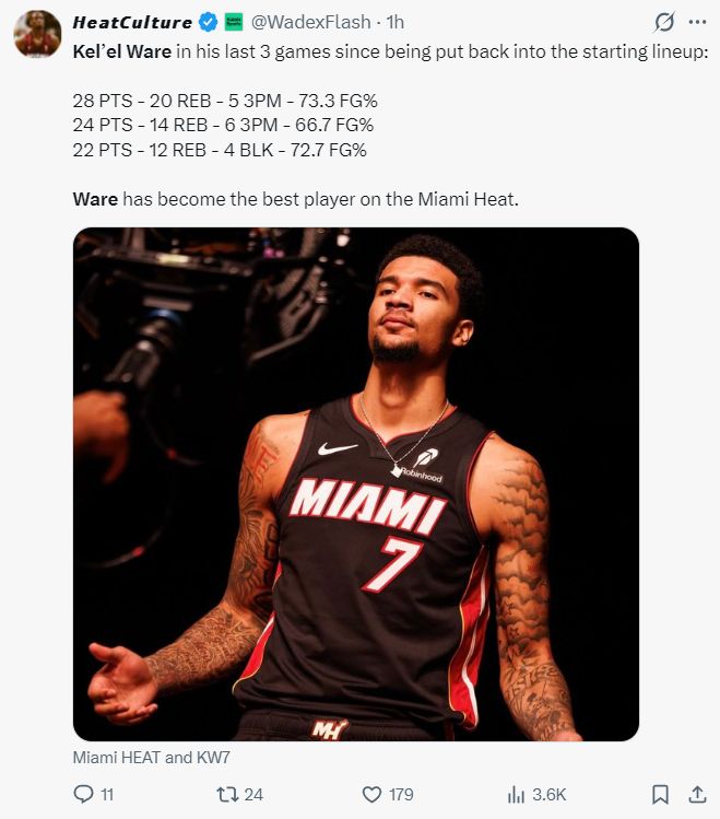 热火媒体晒出韦尔最近三场比赛的表现,他已经成为迈阿密热火最出色的球员没有之一。